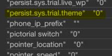 - Jika sudah, jangan lupa simpan dengan nama persist.sys.trial.theme 1 menjadi persist.sys.trial.theme 0
