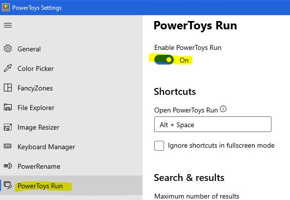 3. Setelah PowerToys diinstal, luncurkan PowerToys Setup dan pilih PowerToys Run di sidebar. Kemudian aktifkan Enable PowerToys Run .