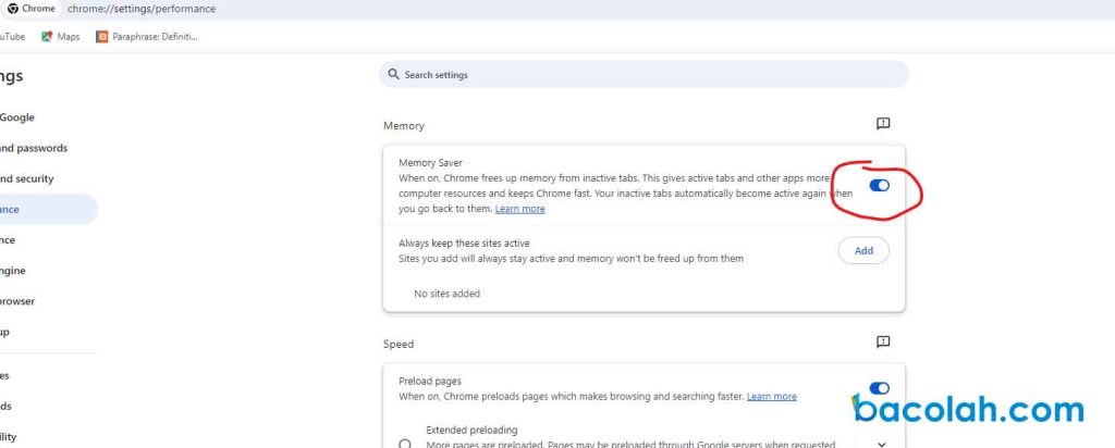3. Aktifkan Fitur Memory Saver Google Chrome