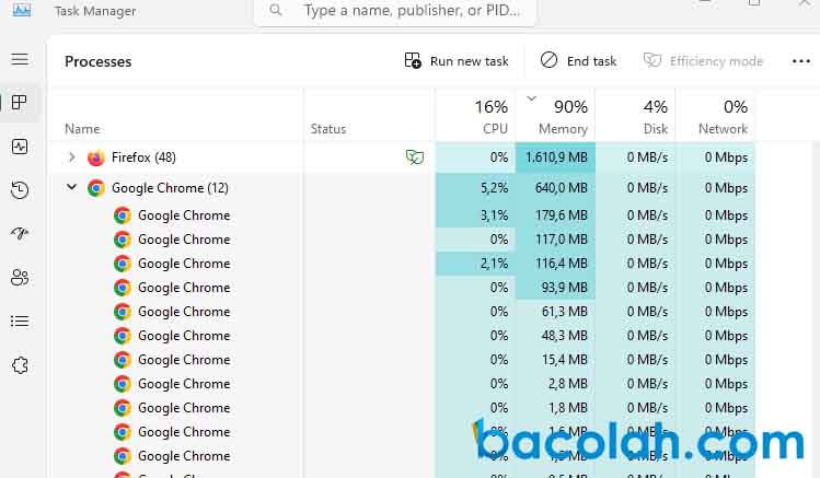 Untuk melihat proses apa saja yang sedang berjalan di google chrome, Anda bisa melihatnya Di task manager. Ingatlah bahwa pengelola tugas akan mencantumkan semua proses Chrome (bukan hanya tab). Untuk mengetahui mana yang merupakan tab, carilah label tab di awal.