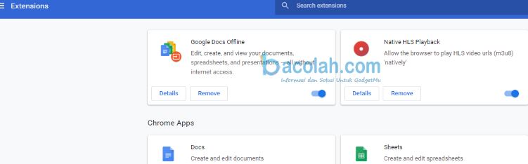 Jika Ada menginstall ekstensi atau adons di browser, Kami menyarankan untuk menonaktifkan atau menghapus untuk sementara waktu. Hal ini di maksudkan untuk menghindari masalah konflik sistem yang ada pada browser Anda.