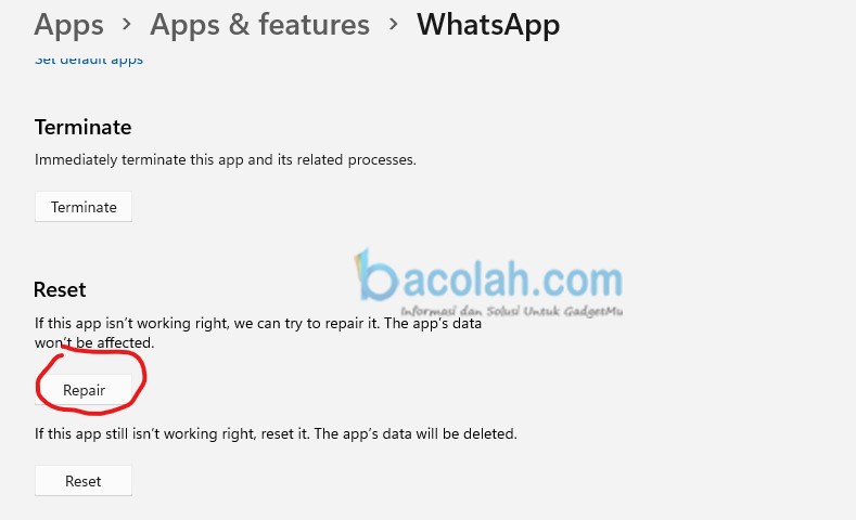 1. Perbaiki Aplikasi Whatsapp Secara Otomatis