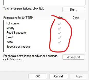 - Pada tab Security ubah atribut permissions menjadi full control menjadi Allow
